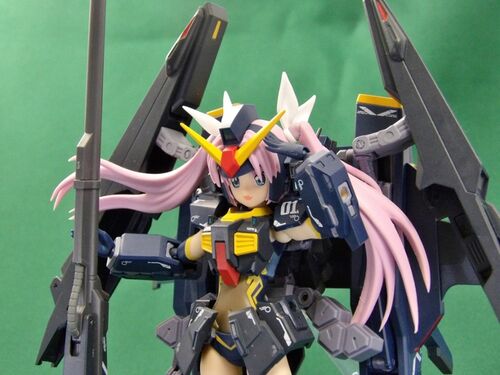 「どうせマントで隠れるんだから見える場所だけ組めばいいや」論法で組んだガンダムジエンド。マントは赤画用紙をぐしゃっと丸めたのを巻き付けただけ 脚の代わりにアクションベースを土台にしてるのでキットより背が高い トップコートの残量が減ってたので…
