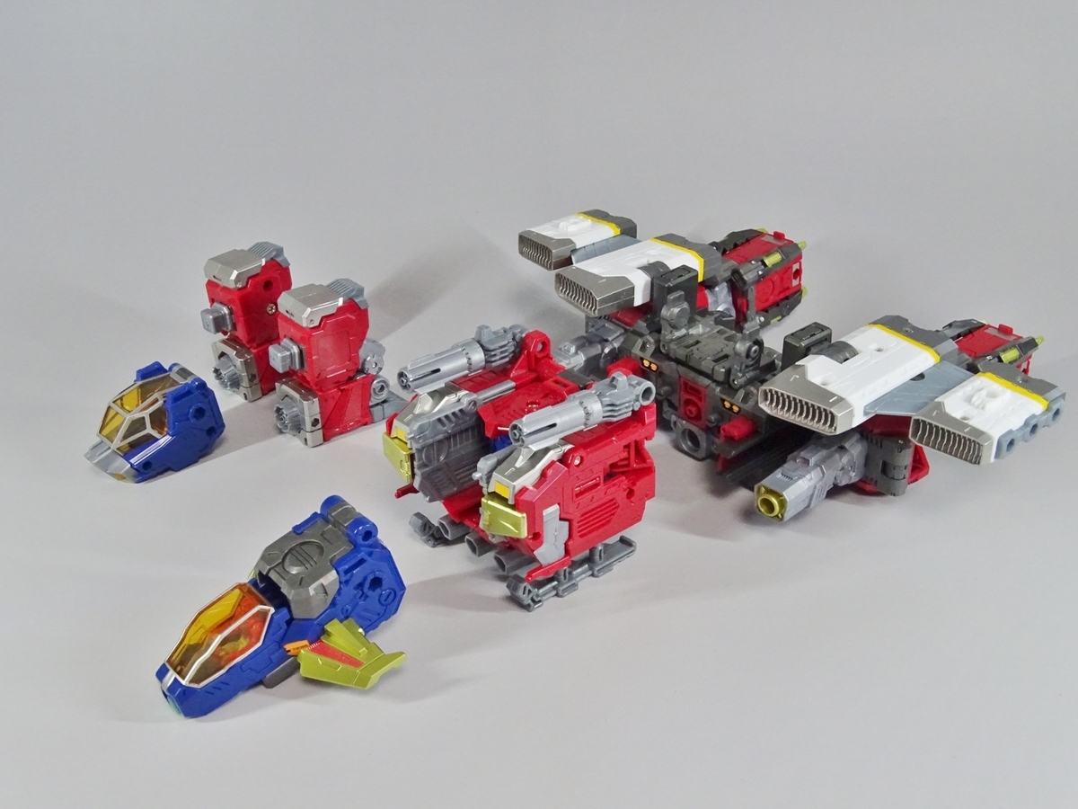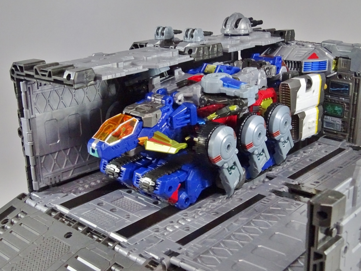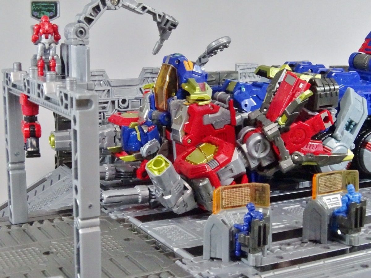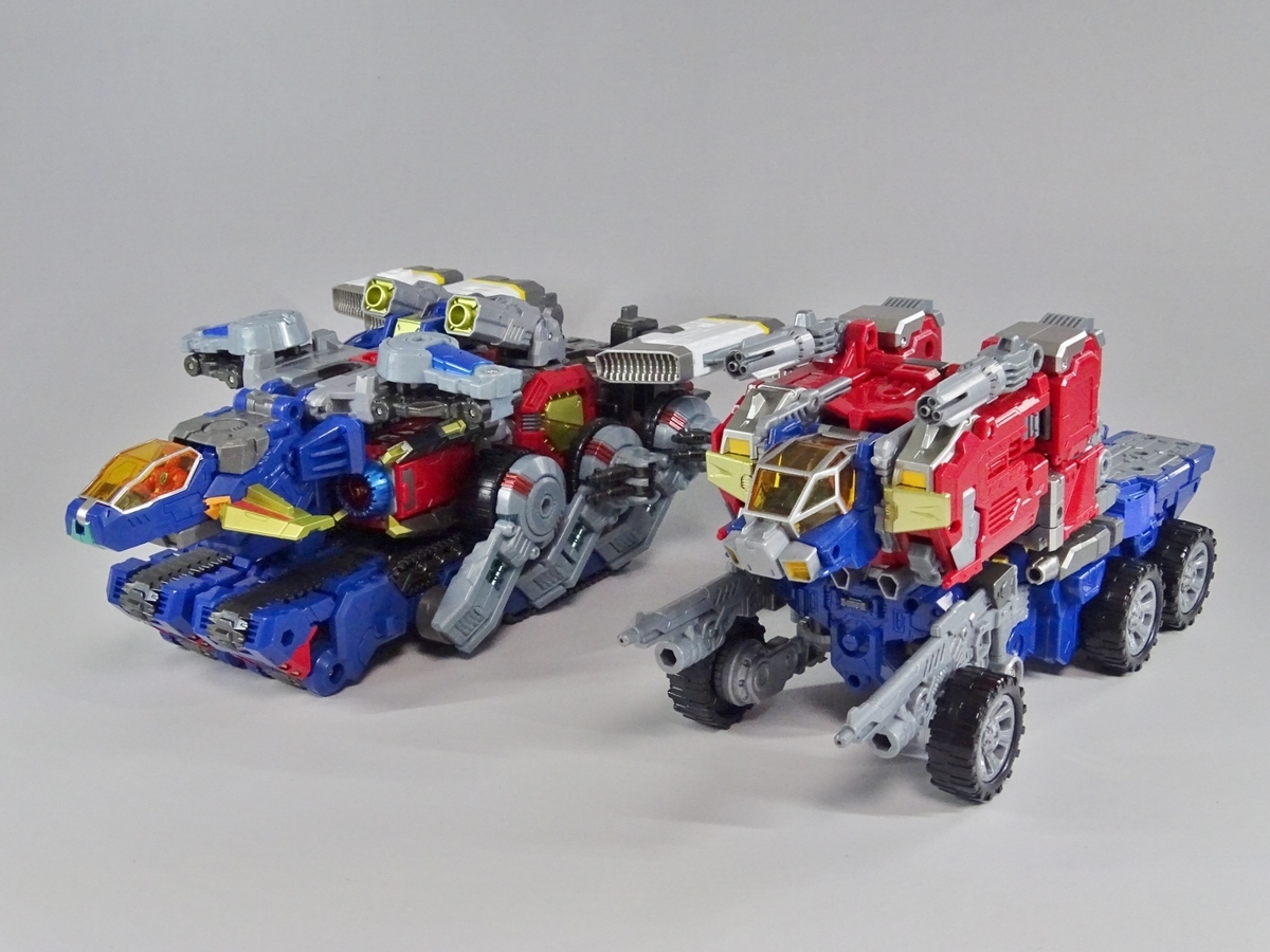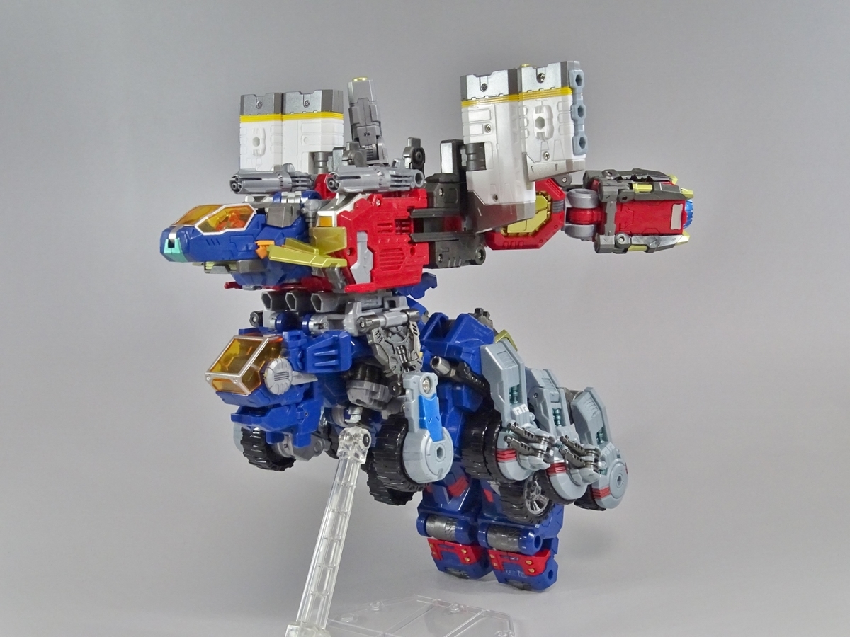 バトルコンボイとパワードグレイターの合体形態である新生パワードコンボイ。旧パワードコンボイはトランスフォーマーのウルトラマグナスの流用元として有名ですが、バトルコンボイが旧型の面影を色濃く残していたのに対し、パワードコンボイは全く異なる雰囲気のロボへと変貌しました。グレイターの名の通り、さながらグレート合体した勇者ロボのようです