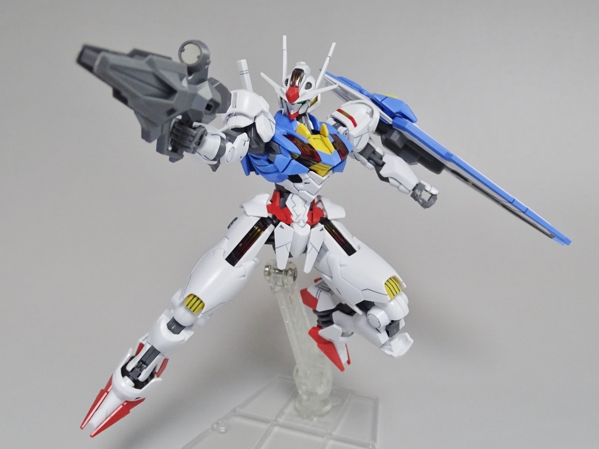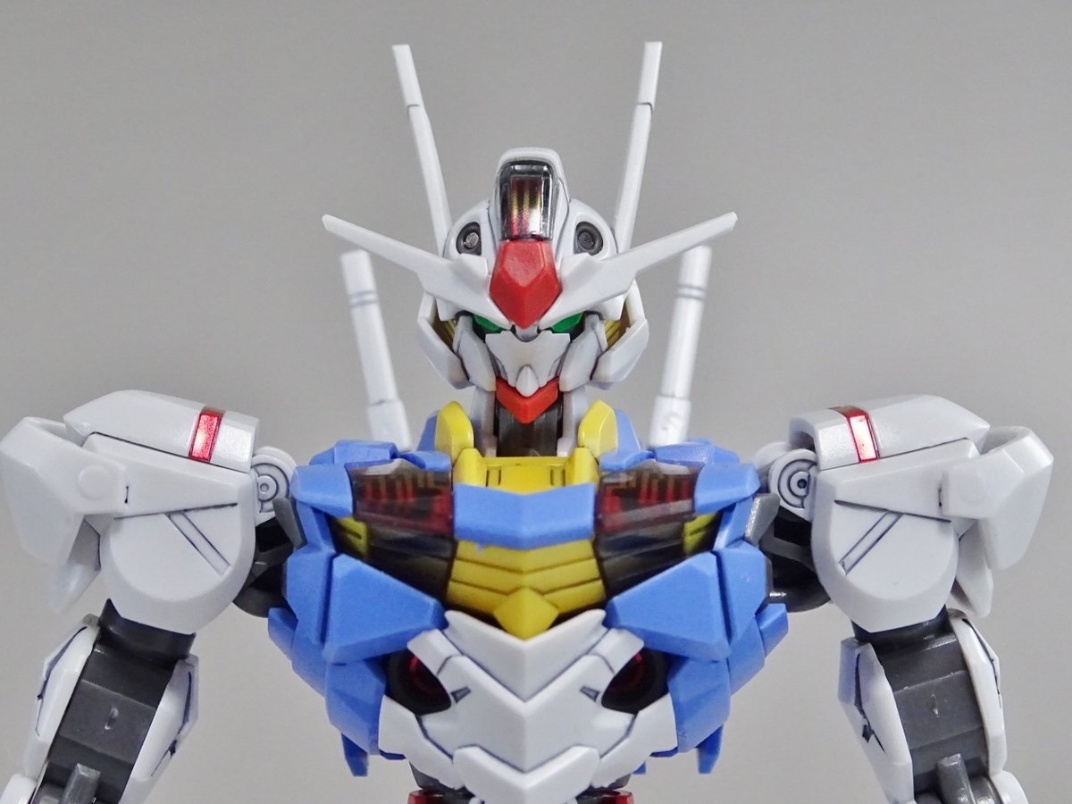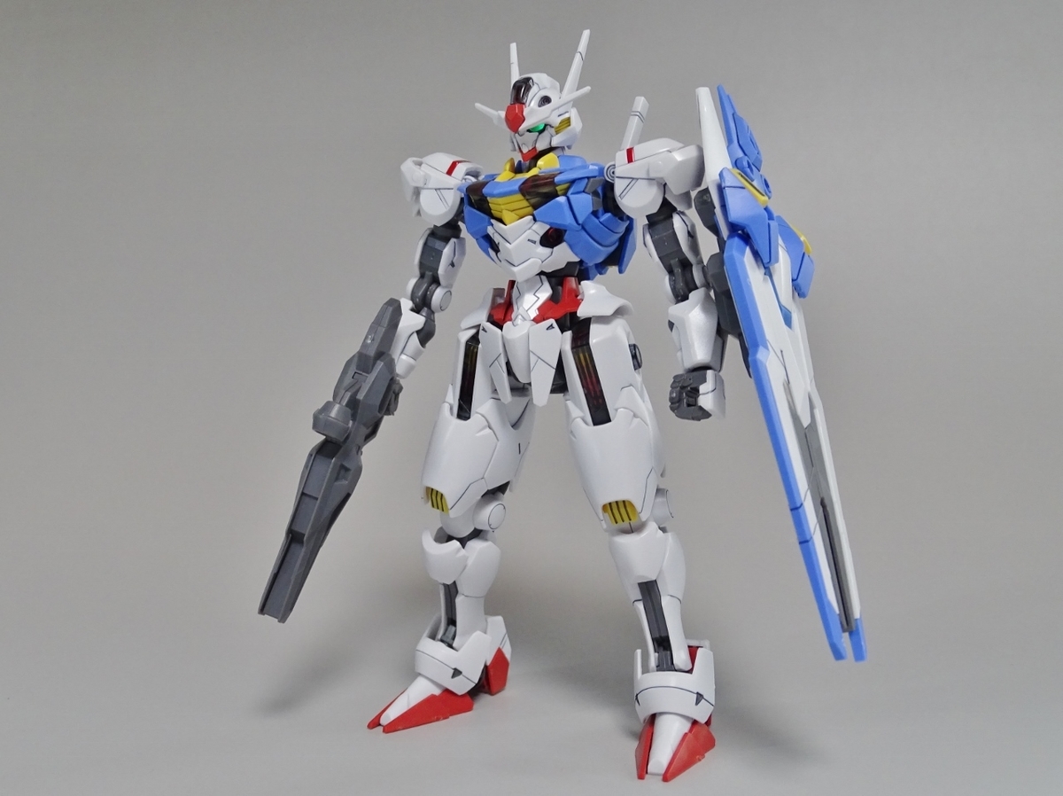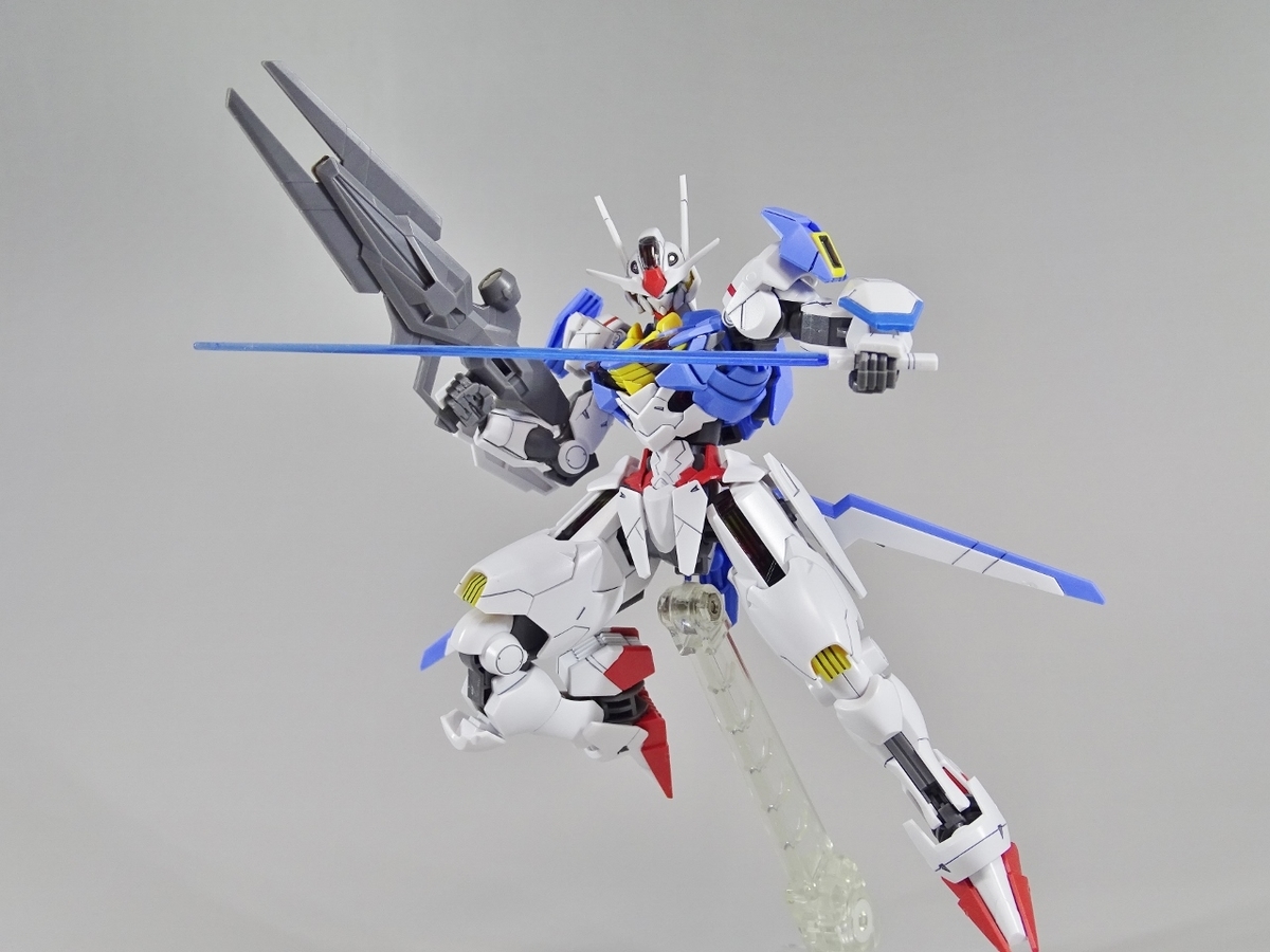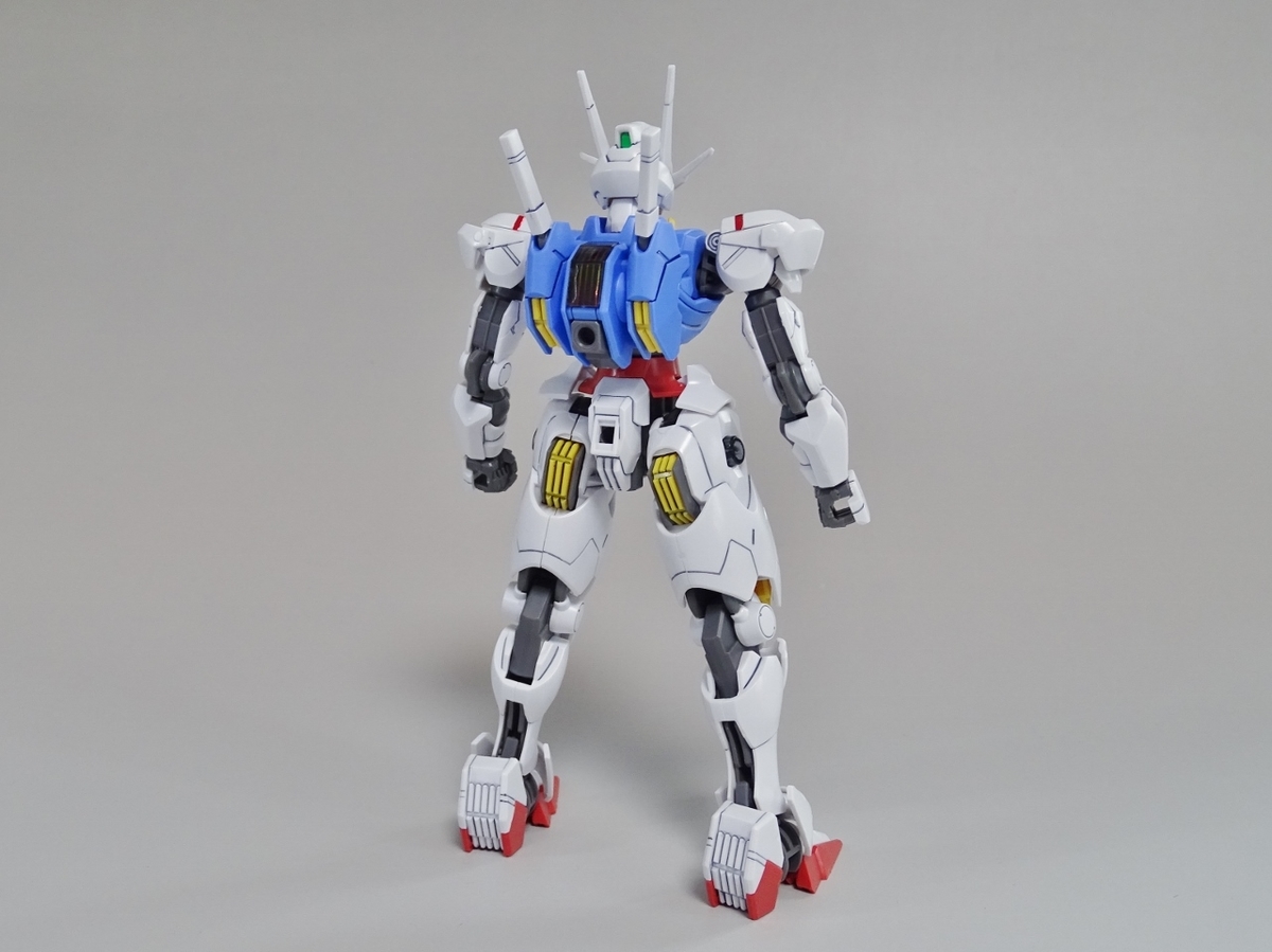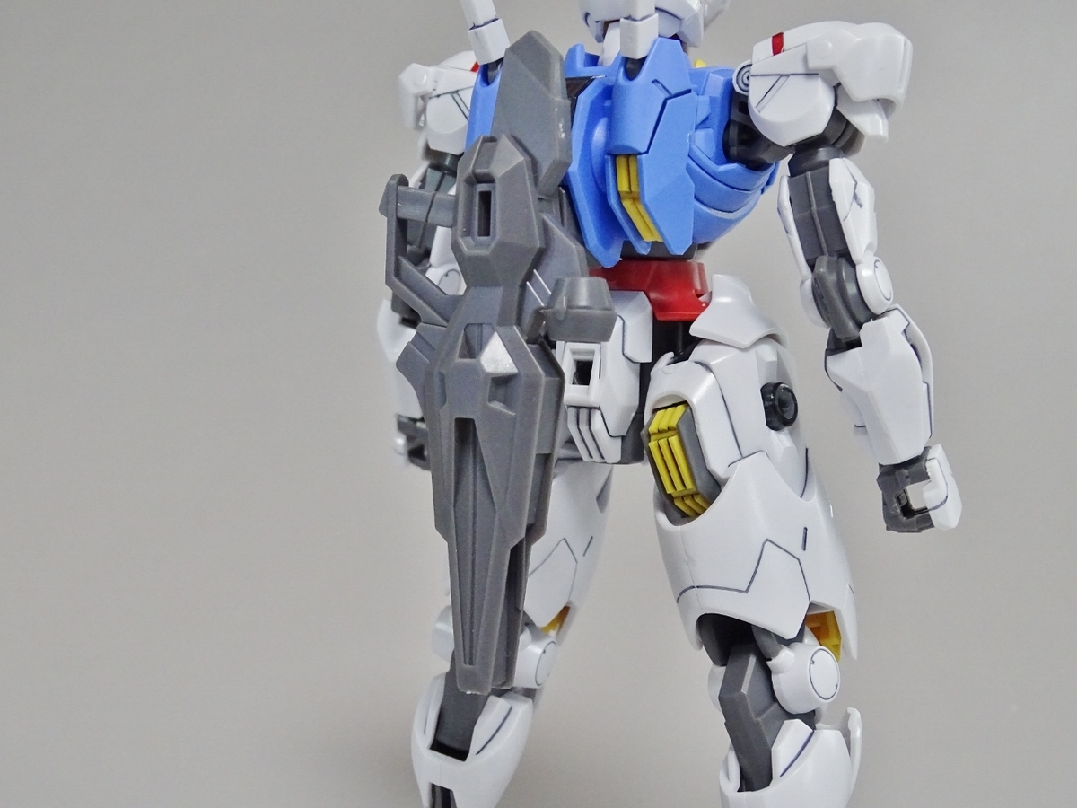 ガンプラ転売ブームが沈静化しないまま放送開始を迎えてしまった『水星の魔女』より主人公機のエアリアル。独特のデザインの機体のはずなのですが、プラモはなんだか前作のバルバトスを丸っこくしたような雰囲気になっています