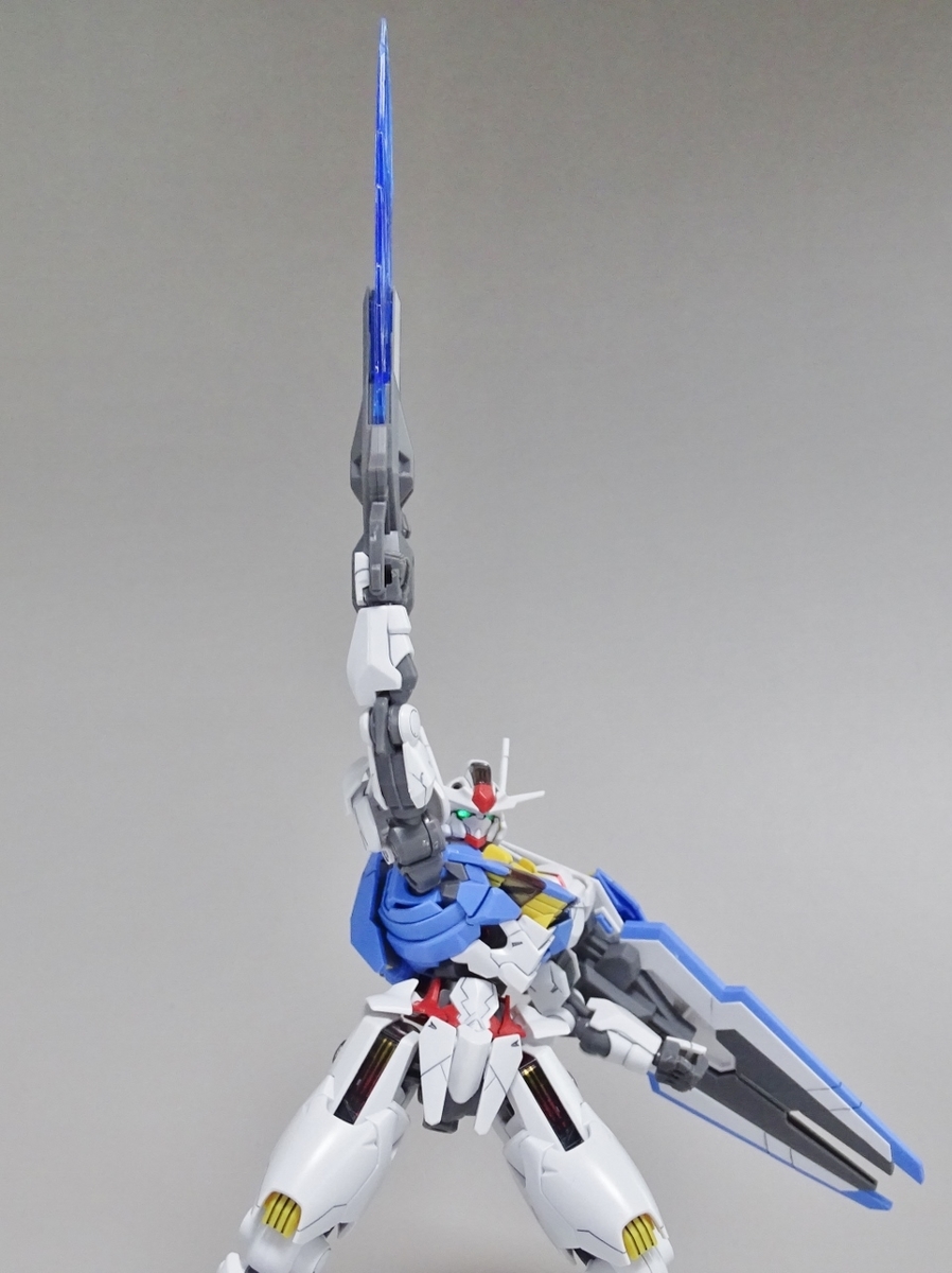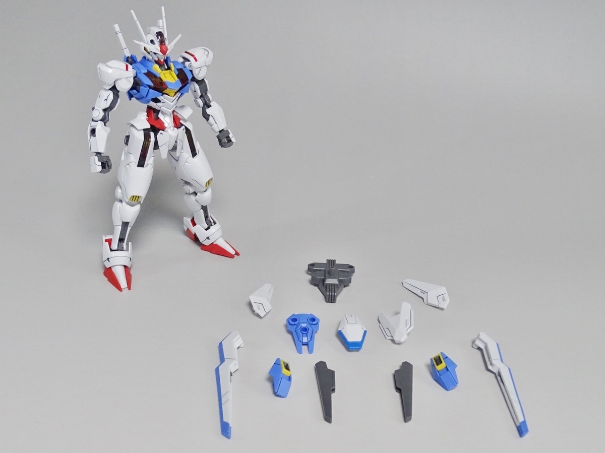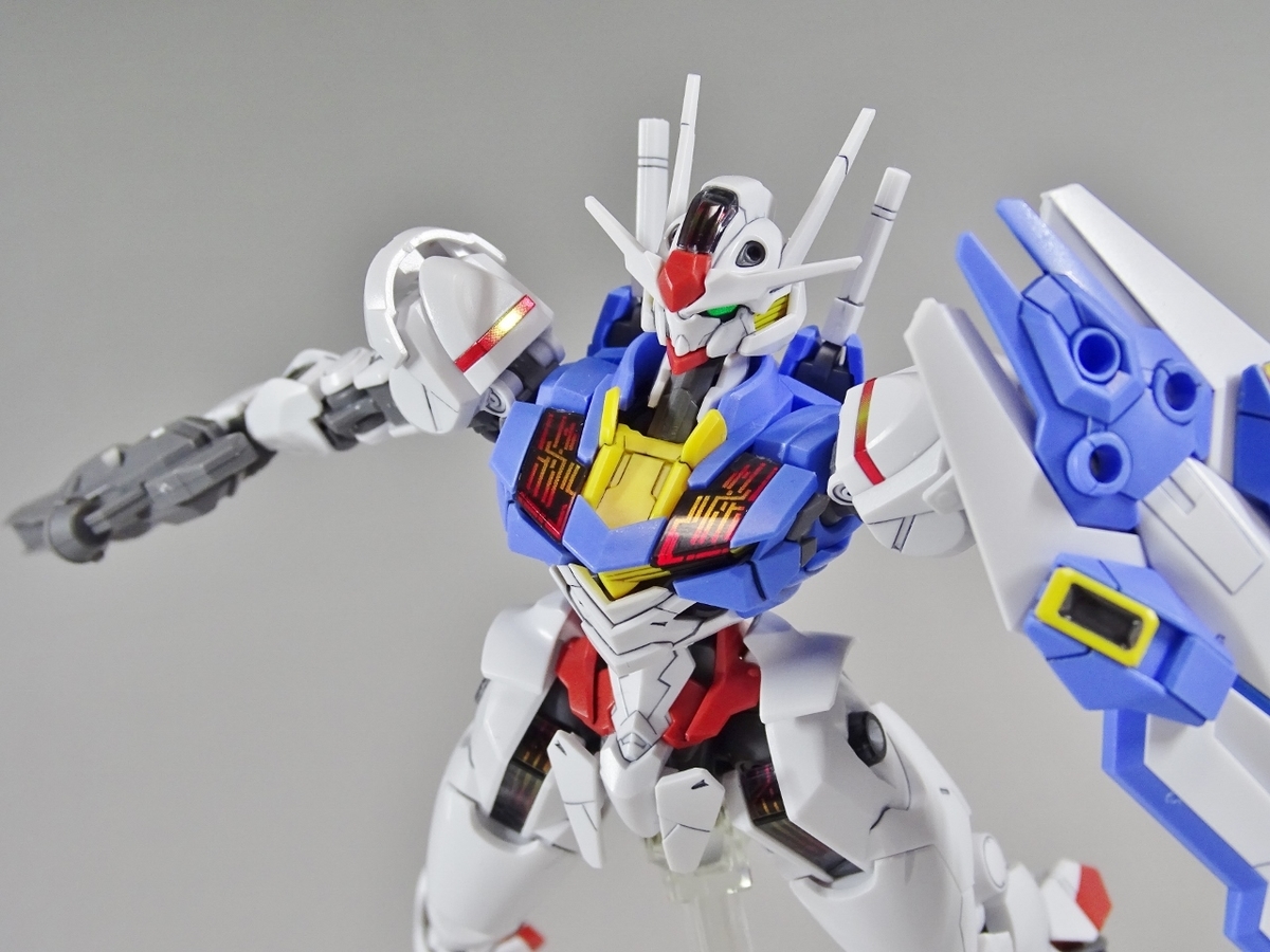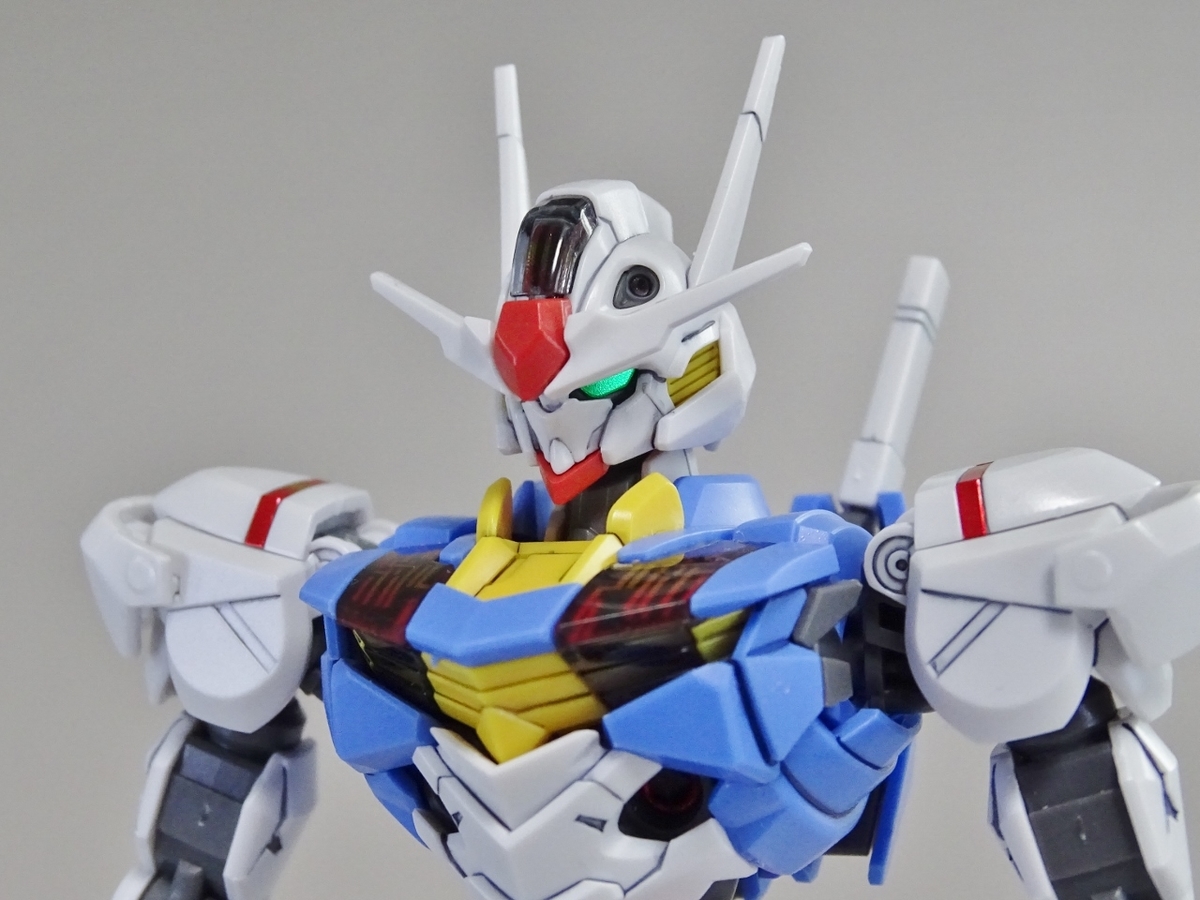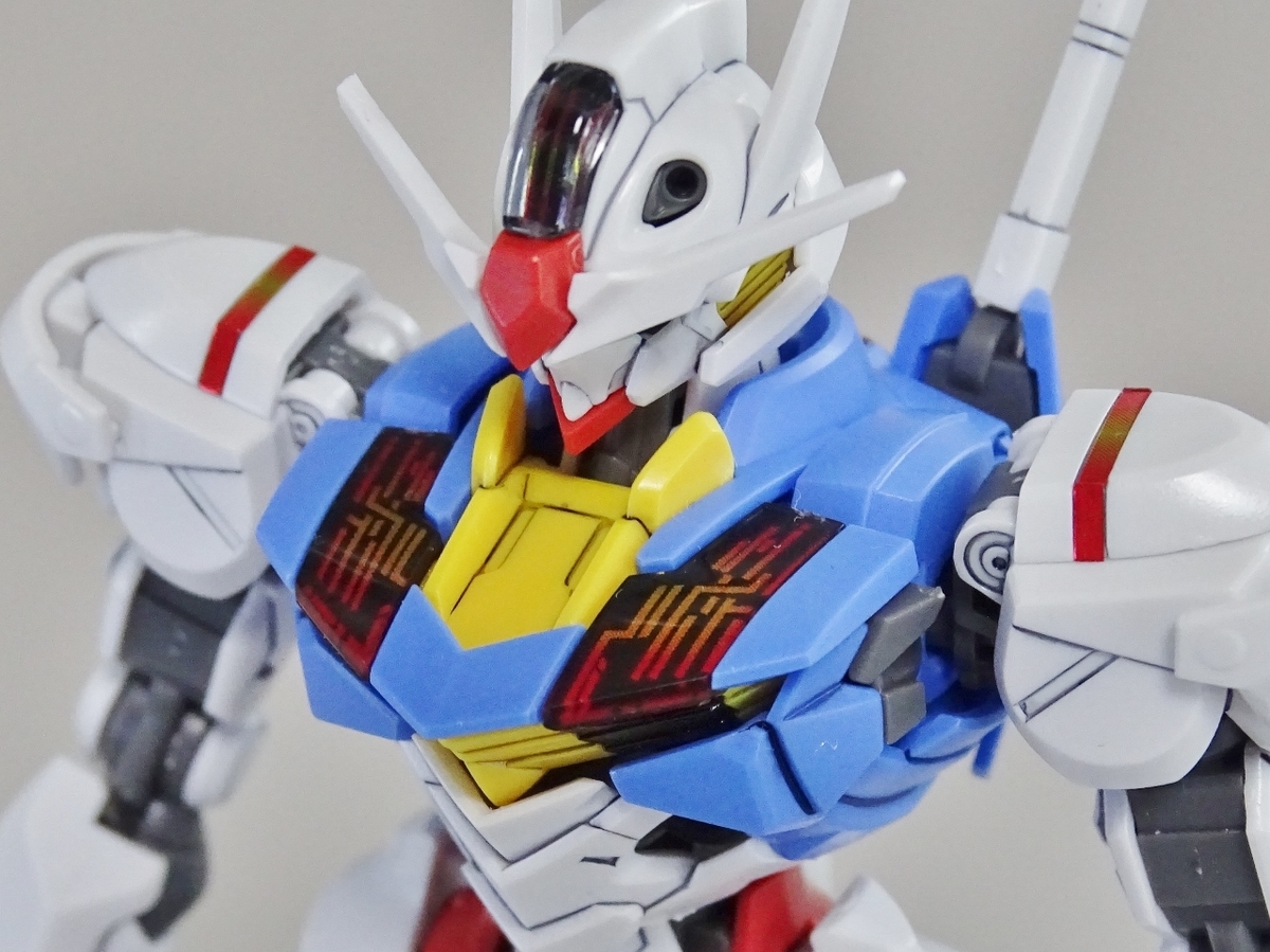 ガンプラ転売ブームが沈静化しないまま放送開始を迎えてしまった『水星の魔女』より主人公機のエアリアル。独特のデザインの機体のはずなのですが、プラモはなんだか前作のバルバトスを丸っこくしたような雰囲気になっています