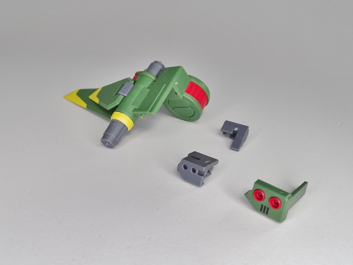 肩のコンボウェポンポッドは前面装甲を外し、フレームを取り出し、フレームを分割してから取り付けるのでかなり面倒。このせいで気軽に換装を楽しむことが出来ません