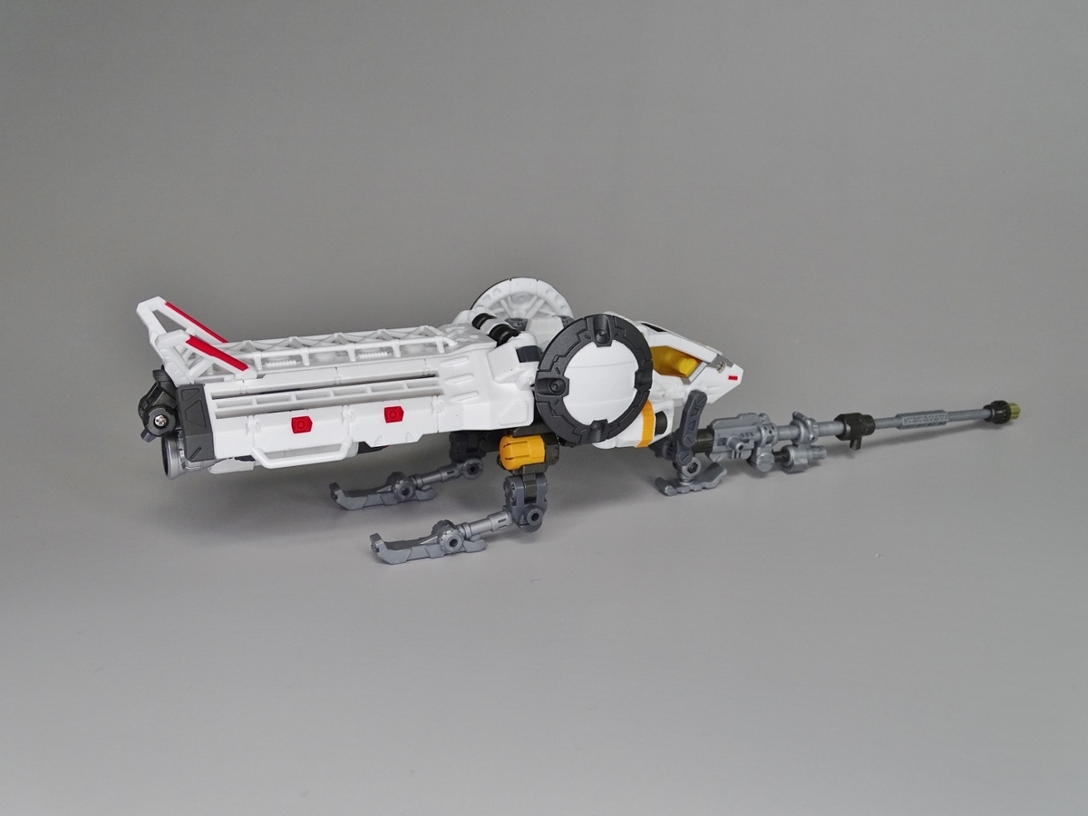 作戦展開地点までの移動や遠距離砲撃で使用するオービター形態。ライフルとオービソプターユニットの計3基の着陸脚が接地します
