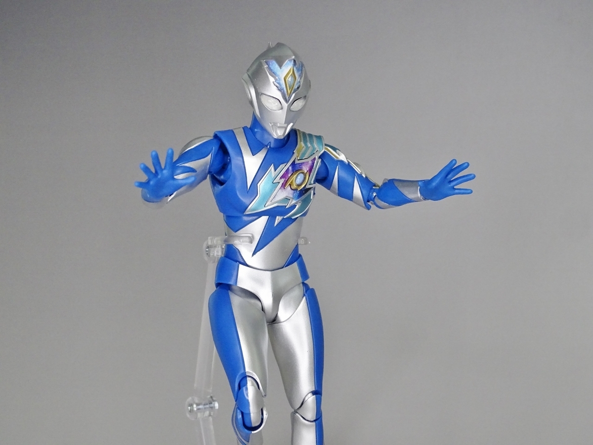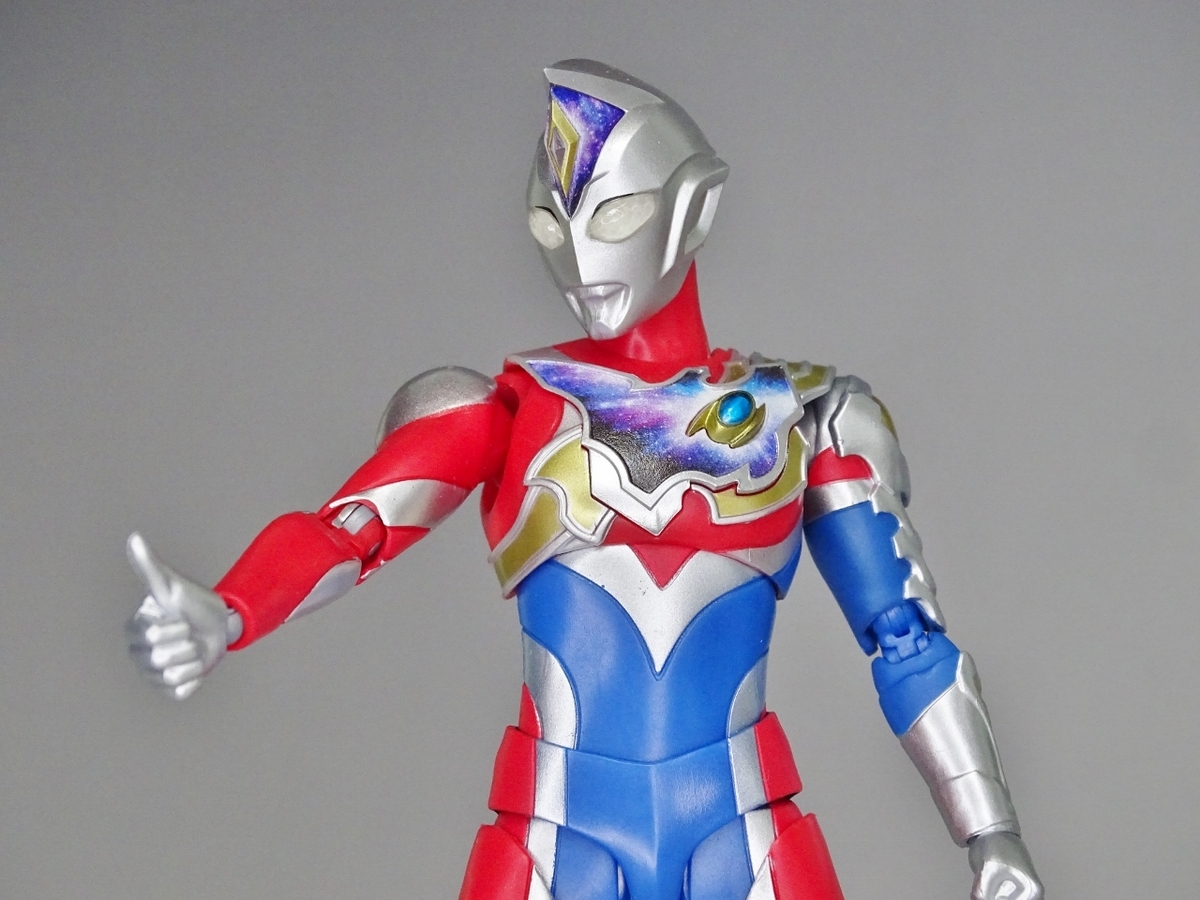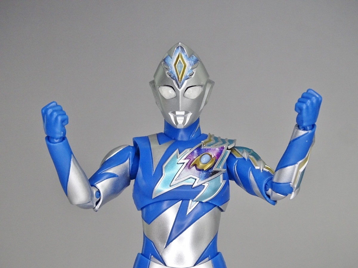 バストアップ。額と胸の宇宙模様はフラッシュタイプ同様にプリントで再現されています。カラータイマーの色は今回も薄かったため仕様みたいですね