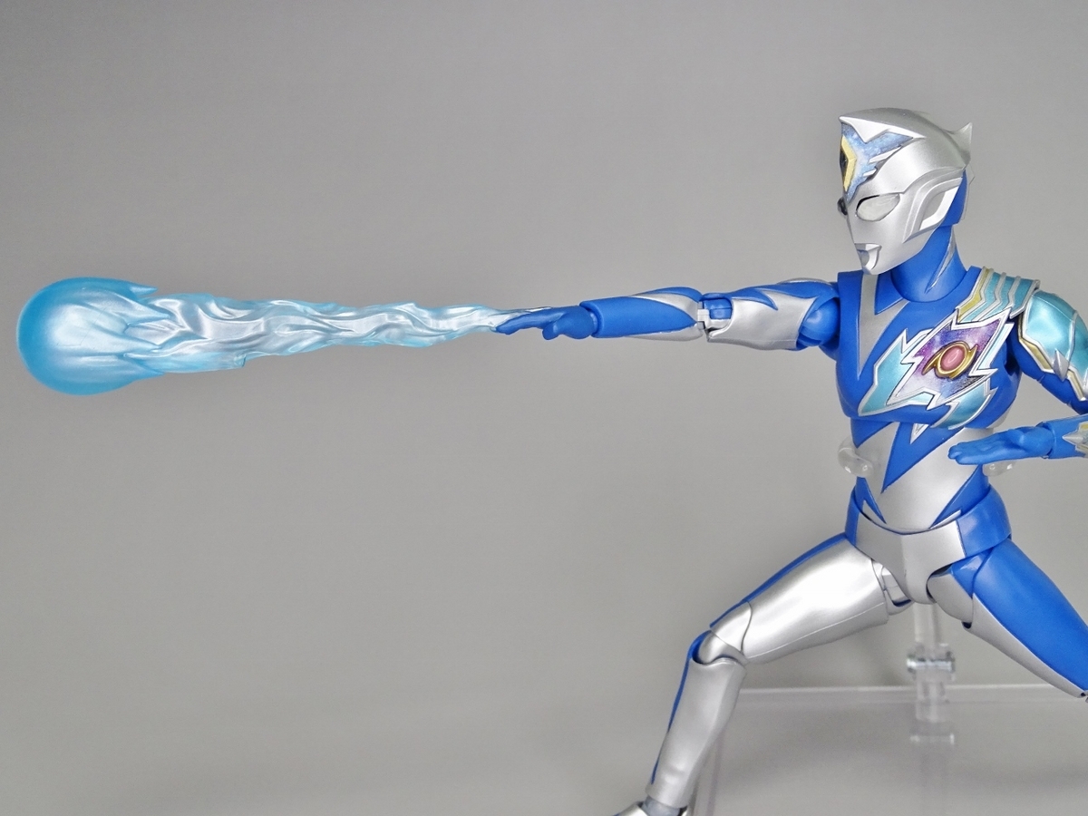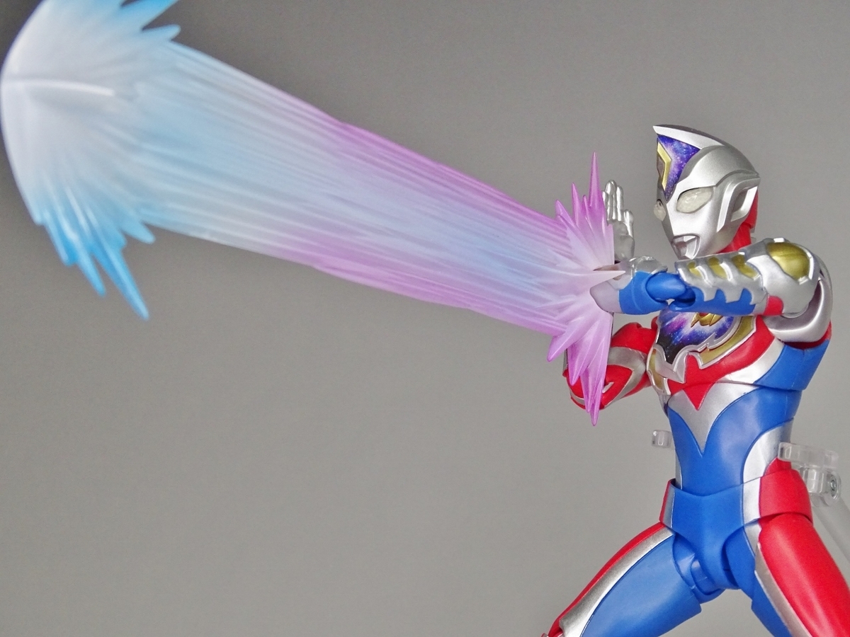 レアリュートウェーブエフェクトは右手首と一体化したものが付属。劇中ではブラックホールを撃ち出していたはずですが、デラシウム光流エフェクト同様に手の先から伸びている形状に変更されています