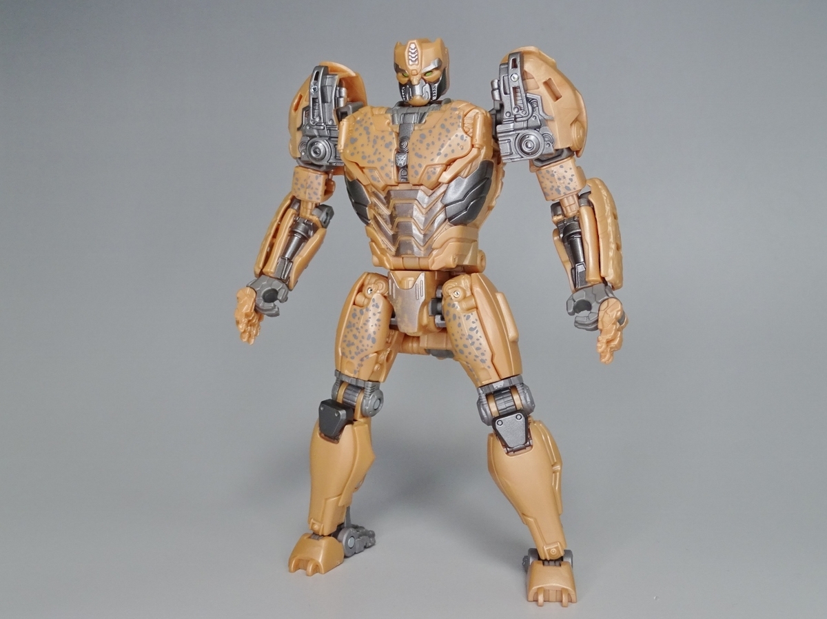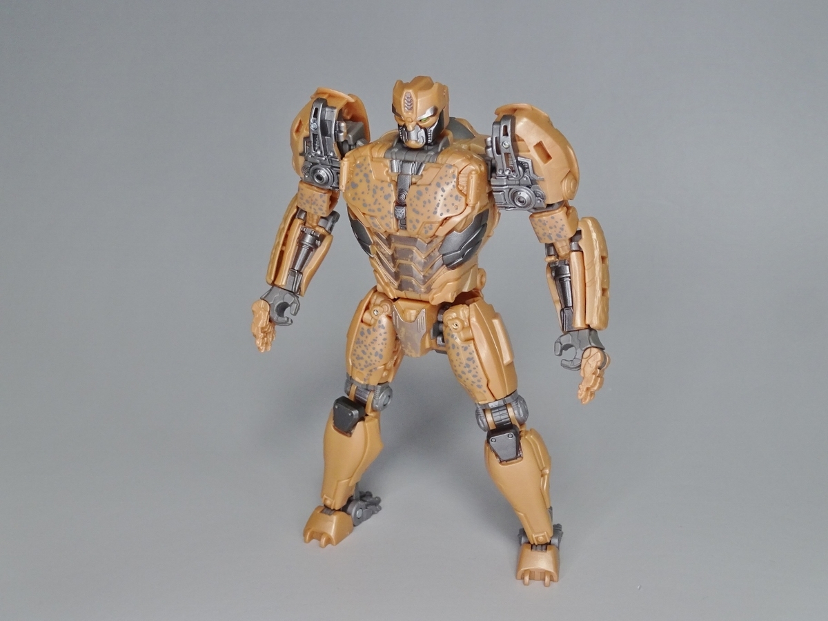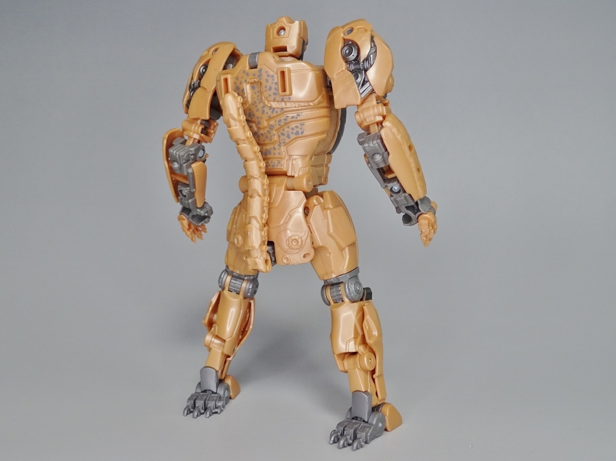 他の面々に比べアニメ版の面影があまり残っていないロボットモード。巧みなパーツ移動でビースト時より四肢を太く見せています