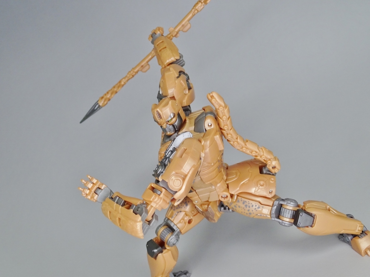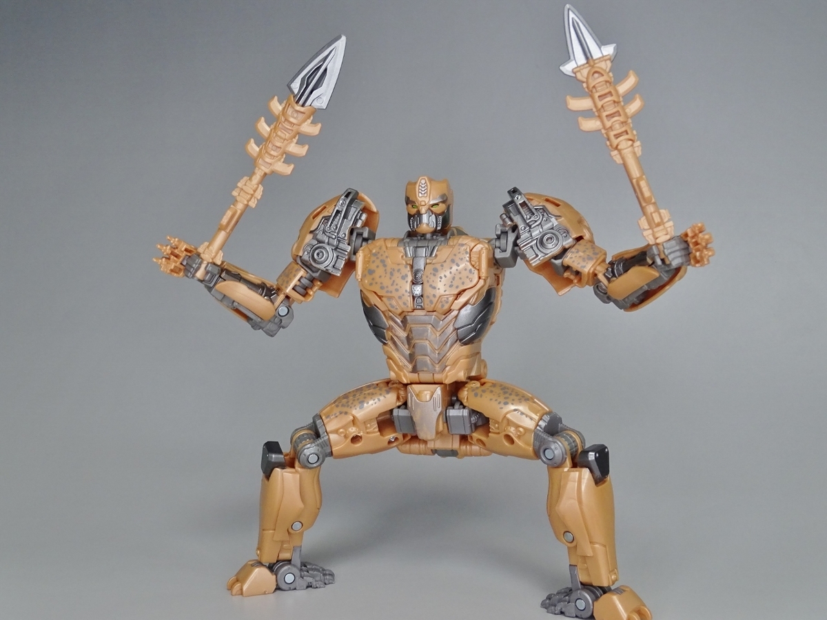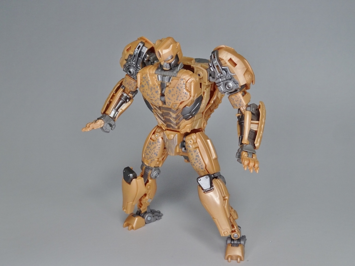 他の面々に比べアニメ版の面影があまり残っていないロボットモード。巧みなパーツ移動でビースト時より四肢を太く見せています
