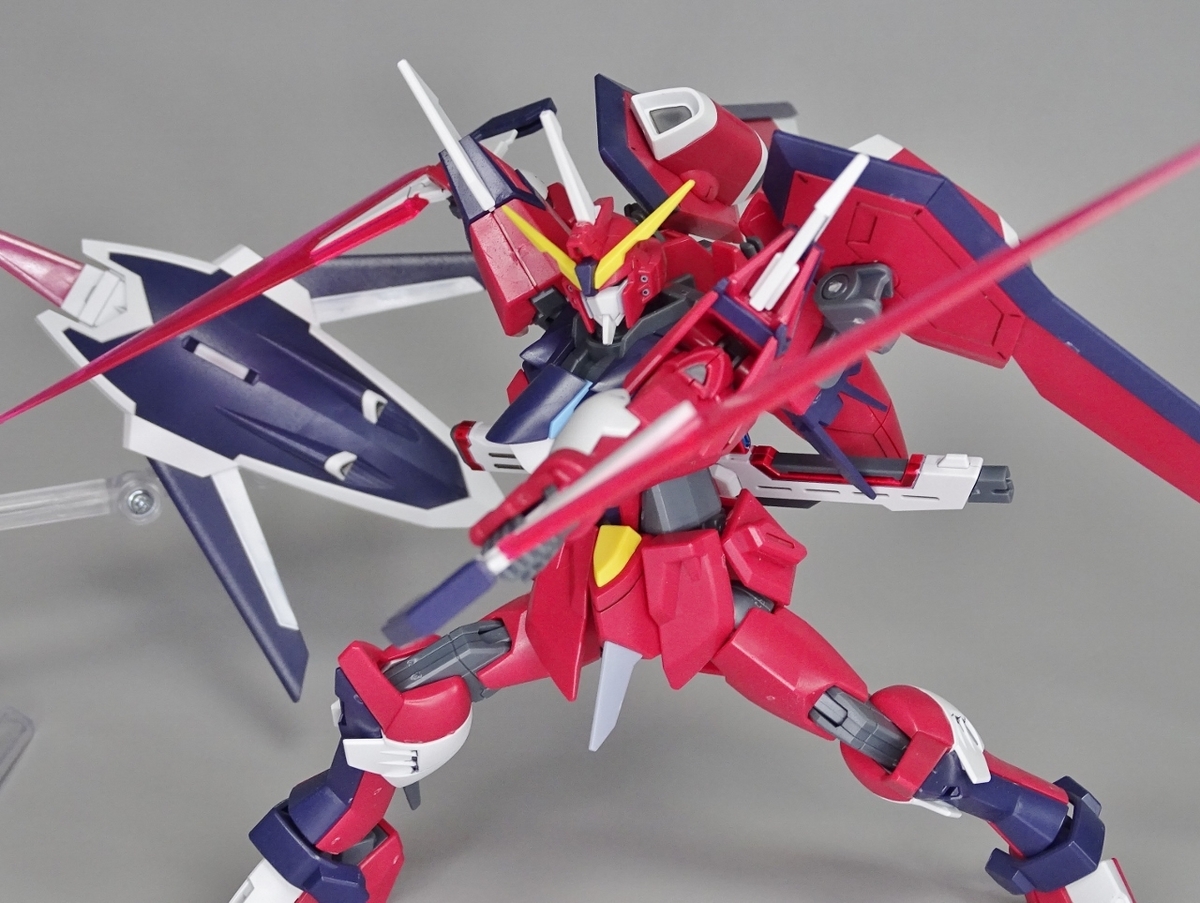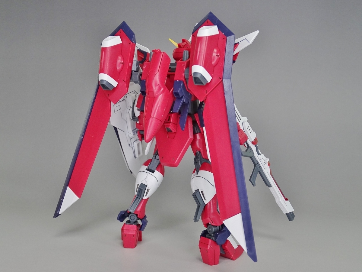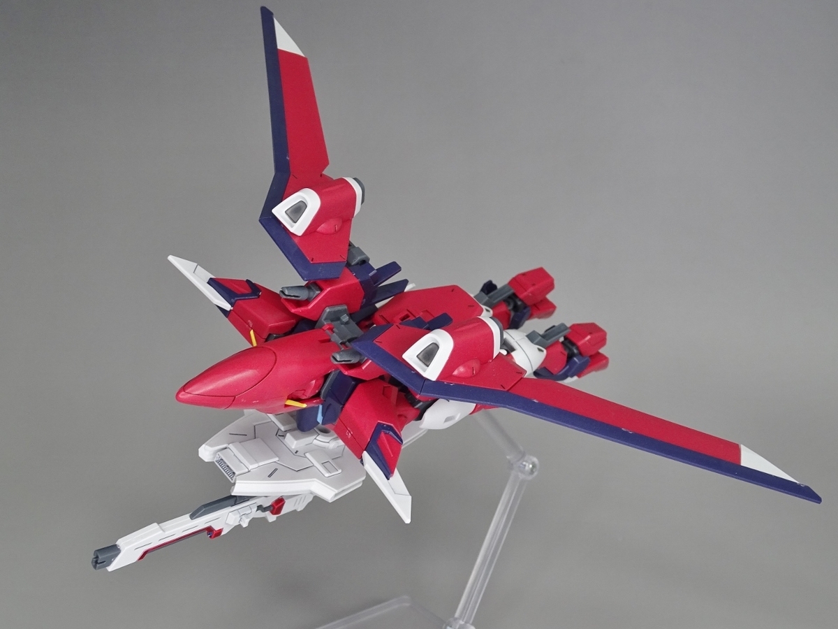 オーブ製になっても形式番号がフリーダムより若い3代目ジャスティス。ライジングフリーダム同様にインフィニットジャスティスの運用データとムラサメの可変技術を基に開発されたとのこと