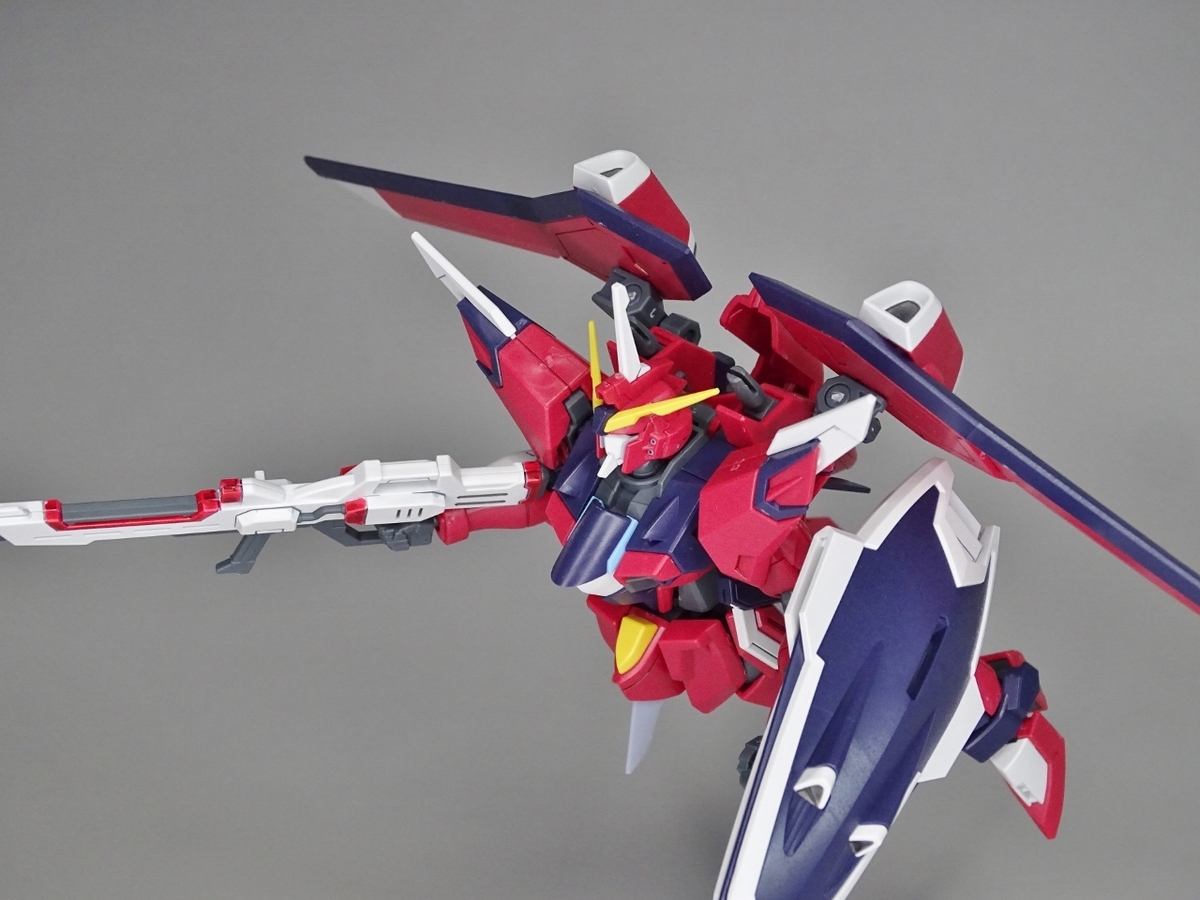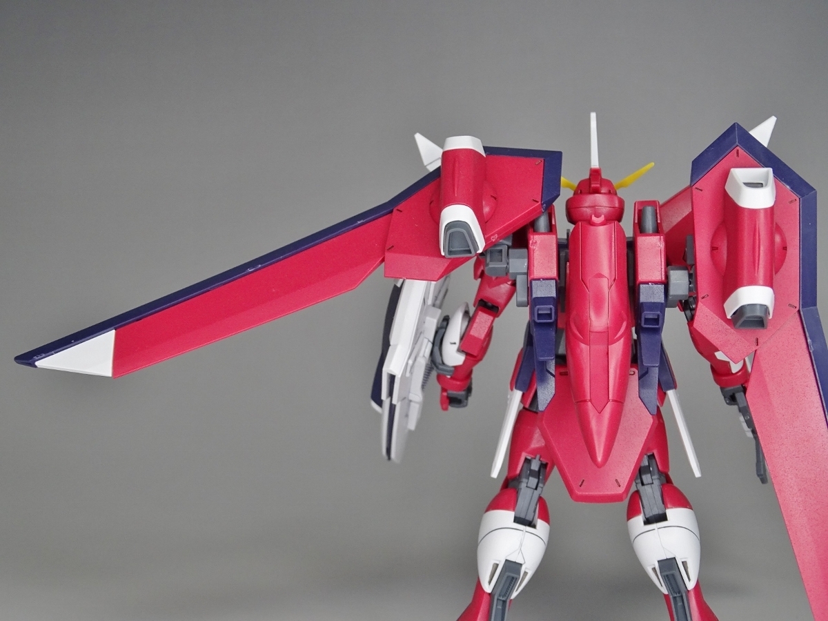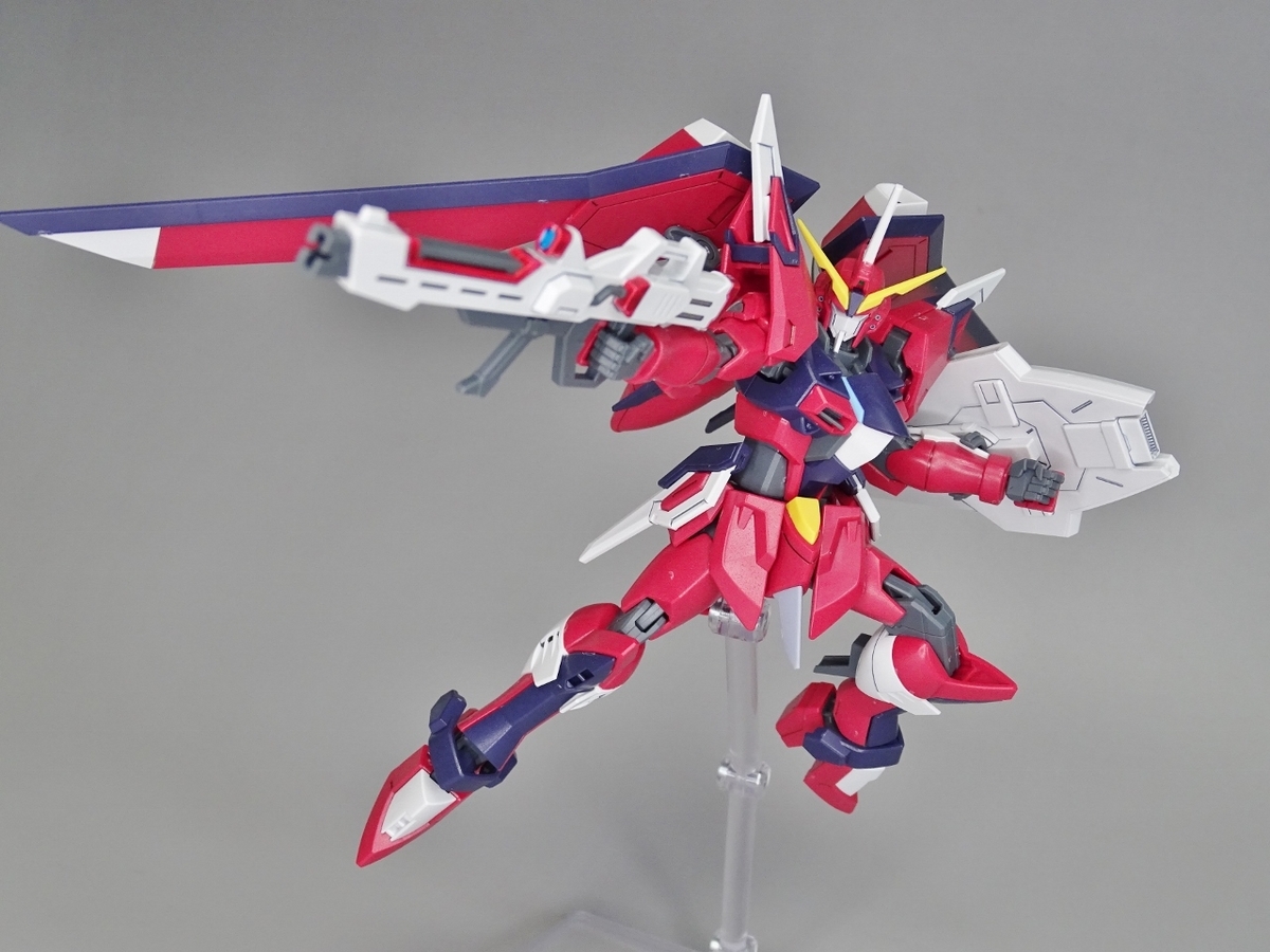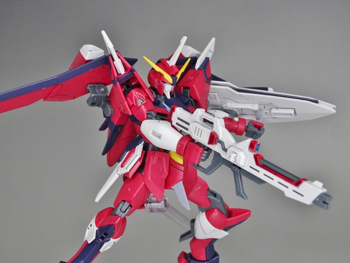 オーブ製になっても形式番号がフリーダムより若い3代目ジャスティス。ライジングフリーダム同様にインフィニットジャスティスの運用データとムラサメの可変技術を基に開発されたとのこと
