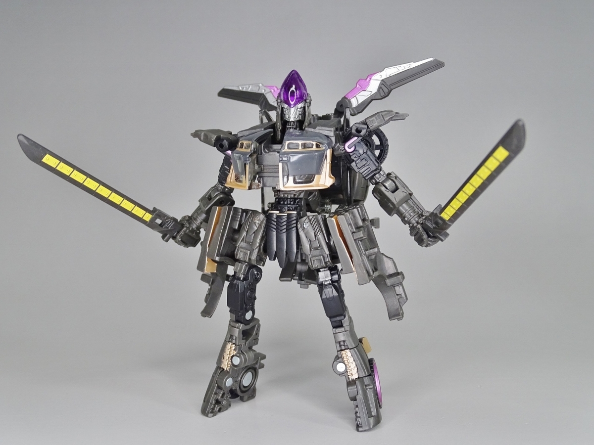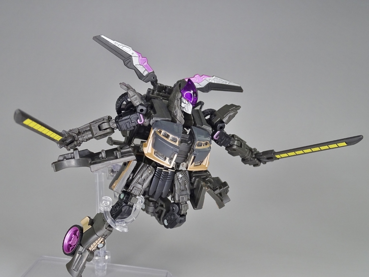 非正規アップグレードパーツ DNA DK-49を使用すると翼と剣のボリュームが補われて不満点がほぼ解消されます。翼がギリギリ本体に収まるかどうかというサイズなのでビークル時に隙間が空いてしまうのが欠点ではあるのですが…